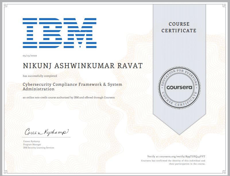 10) Cyber Security Compliance Framework & system administration(IBM)