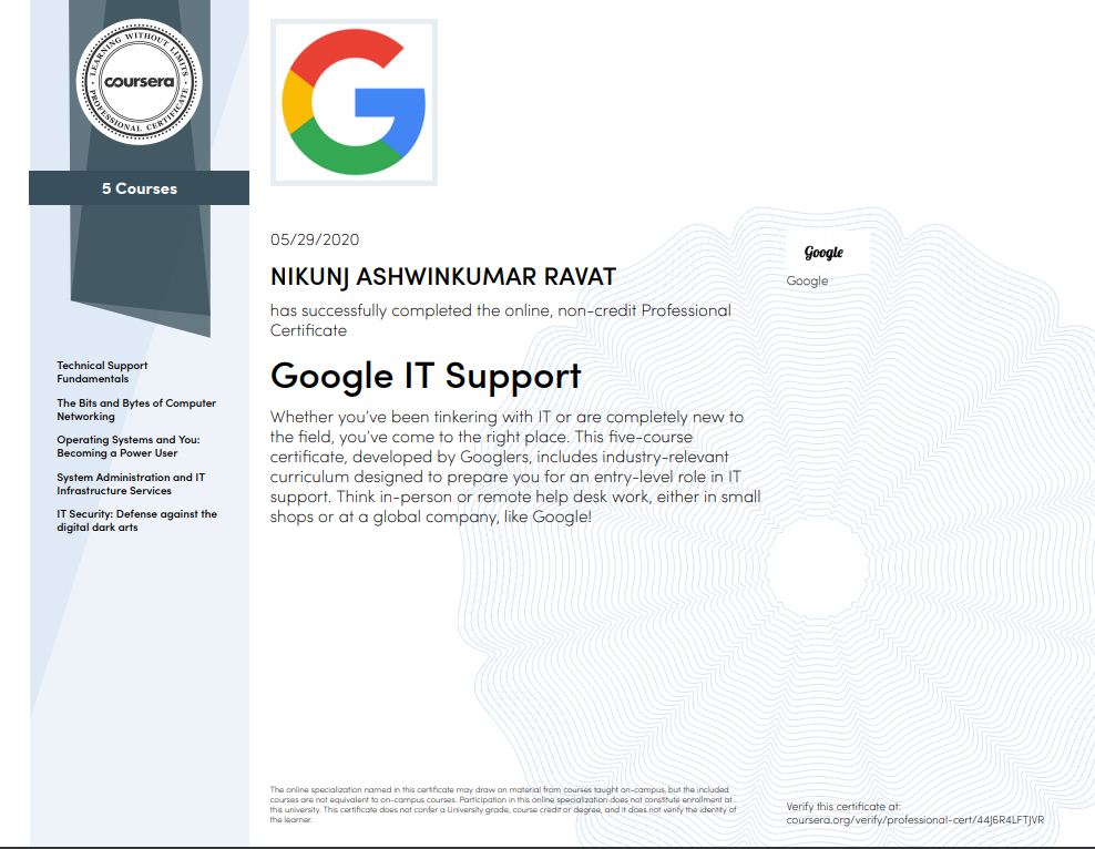 2) Certified Google IT Support