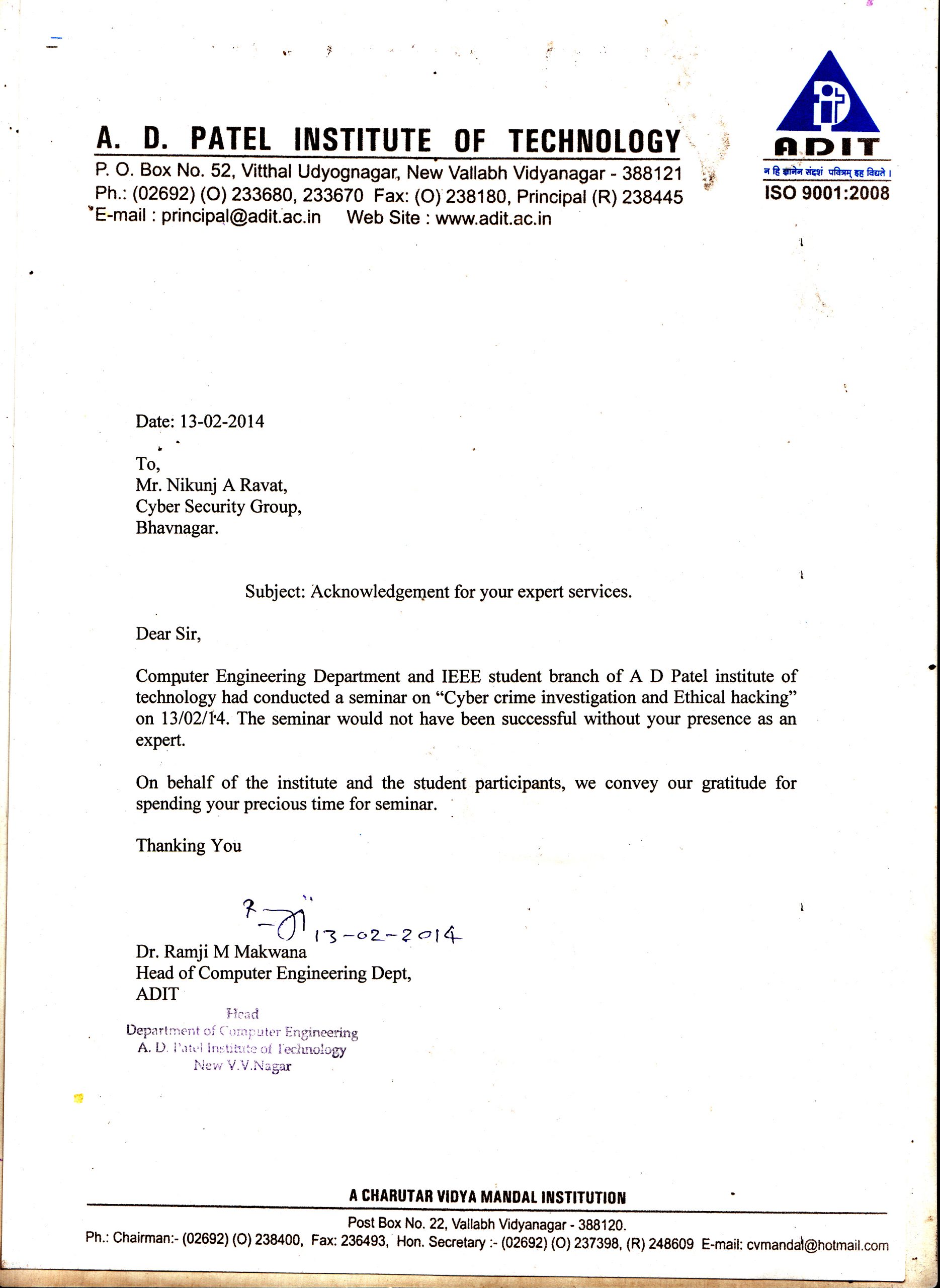 13 February A.D.I.T College in Computer Engineering Department, Anand