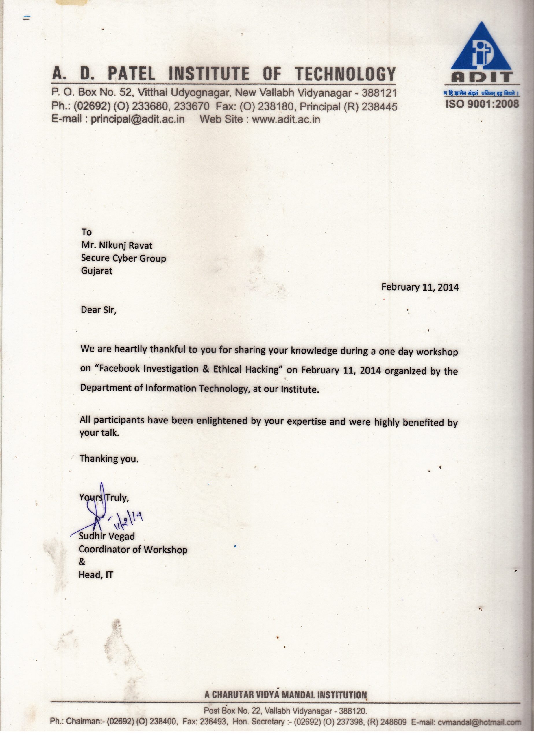 8 February A.D.I.T College in IT Department, Anand (Gujarat)